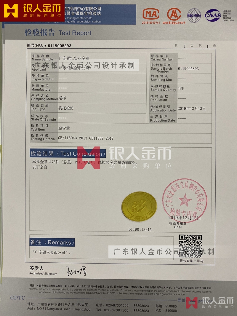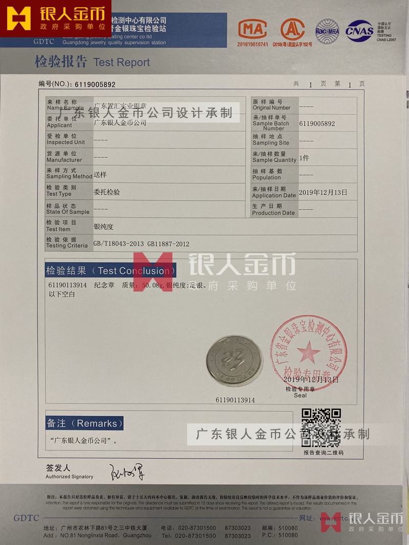 (廣東省金銀珠寶檢測(cè)中心金銀紀(jì)念幣檢驗(yàn)報(bào)告)