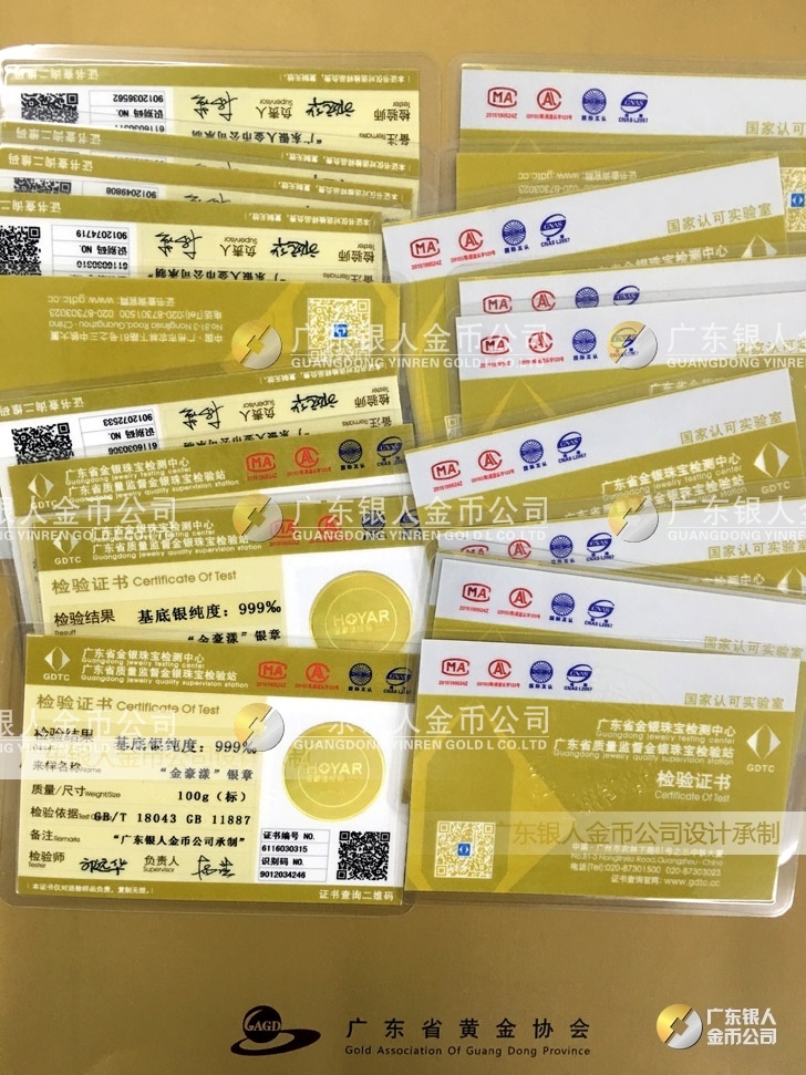廣東銀人金幣公司承接客戶個(gè)性化定制的金銀幣、金銀章、金銀條、金銀牌、金銀盤均由國(guó)家質(zhì)監(jiān)部門、嚴(yán)格檢測(cè)、權(quán)威鑒定: